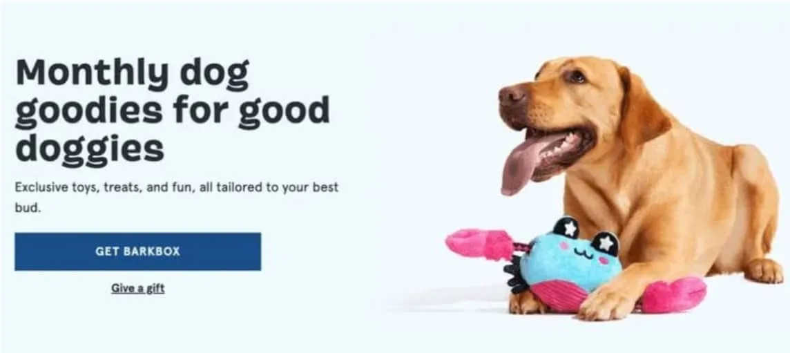 - Their core offering: “monthly dog goodies” AKA a subscription box. Plain, simple and clear.
